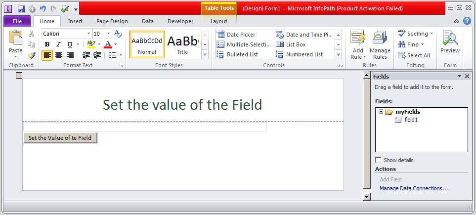 Go back to Infopath form | Click F5 | click to button | value will be set to TextBox